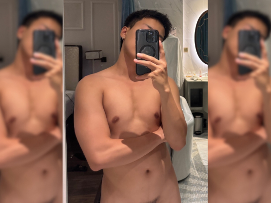 筋肉質のがっちりしたいい体で胸筋がきれいです。シャワーに行く前に触っていると、巨根はガチガチになりました。太くて硬さもすごかったです。最後はすごい噴射、量も勢いもすごくて、全部出たかと思って油断したら、まだ残っていて顔に大量にかけられました。最後の一滴まで美味しくいただきました。少年の雰囲気が残ったかわいい少年系の笑顔がとても可愛かったです。今日もいい新人に会えました。