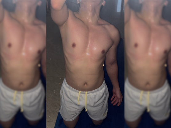 筋肉質のがっちりしたいい体で胸筋がきれいです。シャワーに行く前に触っていると、巨根はガチガチになりました。太くて硬さもすごかったです。最後はすごい噴射、量も勢いもすごくて、全部出たかと思って油断したら、まだ残っていて顔に大量にかけられました。最後の一滴まで美味しくいただきました。少年の雰囲気が残ったかわいい少年系の笑顔がとても可愛かったです。今日もいい新人に会えました。