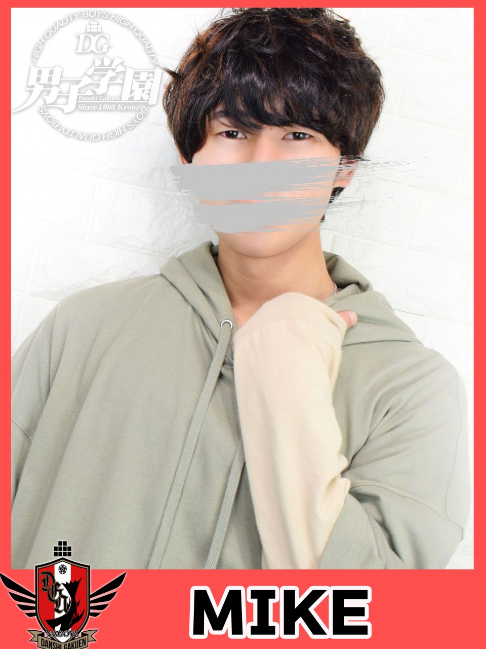 慣れないながらもきっちりした接客と笑顔が好印象の学生ボーイ君です。髪色の斑三色にちなんで《ミケ》とのことだが、貴重なオスの三毛猫で、適度な甘え上手。入店して間もない頃だったので、ベッドプレイにも緊張していて、可愛い仔猫ちゃんでしたが、終始Cock,Jr.を勃たせて喘いでいましたから、やはり青い猫ですね。“サモトラケのニケ”には翼が生えていますから、“エロダラケのミケ”もきっと飛べるはず♬
